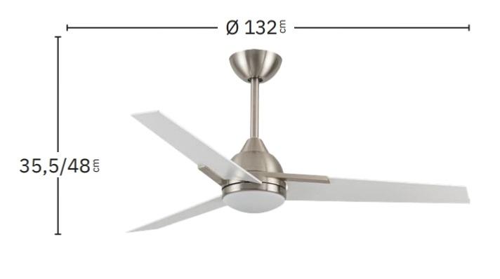| | | Ventilador de Techo Argestes Fabrilamp | | Ventilador de la serie ARGESTES realizado en metal, MDF y cristal, en color NEGRO con tres aspas de color madera GRIS. Tiene 6 velocidades ajustables. Motor DC, con Tecnología LED INTEGRADA con una potencia de 22 watios, con 3 TEMPERATURAS DE LUZ SELECCIONABLES( 3000-4000-6000K) y 2180 lúmenes. Su medida es de 35,5/48X132X132 centímetros, viene con dos medidas de Tija lo que permite adaptarlo para distintas alturas de techo. Control de aire verano o invierno. Mando a distancia INCLUIDO con MEMORIA DE COLOR incorporada y TEMPORIZADOR 1/2/4 H. Modelo también disponible en níquel/blanco. | Caracteristicas Ventilador Argestes Fabrilamp | Materiales | - Base Motor: Metal - Aspas: Madera Plywood - Difusor de luz: Policarbonato | | Tonalidad de Metal | Negro | Accionado mediante | Mando a distancia. | Programador de apagado | Sí | Numero de Aspas | 3 | Tonalidad de Aspas | Gris | Motor Tipo | DC - Bajo Consumo | Velocidades | 6 | Consumo / Flujo aire Revoluciones / Sonoridad | - 1ª velocidad: 7.1w - 2760m3/hora - 104 rpm - 25 dB - 2ª velocidad: 8.7w - 3520m3/hora - 117 rpm - 27 dB - 3ª velocidad: 12.8w - 4320m3/hora - 142 rpm - 30 dB - 4ª velocidad: 20w - 5120m3/hora - 179 rpm - 32 dB - 5ª velocidad: 23w - 5930m3/hora - 192 rpm - 35 dB - 6ª velocidad: 27w - 6730m3/hora - 201 rpm - 38 dB | Función Invierno | Si. Activada en el mando. | Luz | Sí | | Tipo de Luz | Tecnologia LED integrado | | Potencia de Luz | 22w | | Lumenes | 2180 | | Tonalidad de la luz | Seleccionable 3000-4000-6000 / Semicalida, Neutra o Fria | Posible montaje sin Barra | No | Posible montaje en techo inclinado | Si < 30º | Grafico de medidas Ventilador Argestes Fabrilamp |