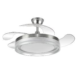 | Ventilador DC de la serie CERRATO en color NEGRO con tres aspas DESPLEGABLES muy resistentes. Realizado en metal, ABS y policarbonato. De diseño moderno y original. Tiene seis velocidades ajustables. Motor DC. Tecnología LED integrada con una potencia de 72W, 7200 lúmenes y 3 TEMPERATURAS DE LUZ (3000-4000-6000K), luz cálida, luz natural y blanco frío. Control de aire verano o invierno. Su medida es de 36,5/49X49 centímetros con las aspas plegadas y de 36,5/49X107 centímetros con las aspas desplegadas, con DOS MEDIDAS DE TIJA para instalar a distintas alturas de techo. Mando a distancia INCLUIDO con MEMORIA DE COLOR y TEMPORIZADOR 1/2/4/8 H. Modelo disponible en color blanco, negro, níquel y cuero. |