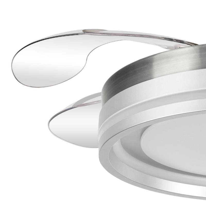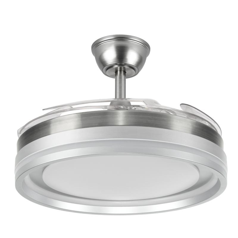 | Ventilador DC de la serie CERRATO en color NÍQUEL con cuatro aspas DESPLEGABLES muy resistentes. Realizado en metal, ABS y policarbonato. De diseño moderno y original. Tiene seis velocidades ajustables. Motor DC. Tecnología LED integrada con una potencia de 59W, 6980 lúmenes y 3 TEMPERATURAS DE LUZ (3000-4000-6000K), luz cálida, luz natural y blanco frío. Control de aire verano o invierno. Su medida es de 34,5/42X50 centímetros con las aspas plegadas y de 34,5/42X107 centímetros con las aspas desplegadas, con DOS MEDIDAS DE TIJA para instalar a distintas alturas de techo. Mando a distancia INCLUIDO, REGULABLE EN INTENSIDAD, con MEMORIA DE COLOR y TEMPORIZADOR 2/4 H. Modelo disponible en color blanco, níquel y cuero. |