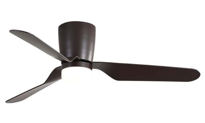 Ventilador de techo de motor gama alta y bajo consumo con 5 velocidades y programador de apagado automatico. Ideal para estancias de techos bajos gracias a su poca altura de techo. Equipado con luz LED, pudiendo seleccionar la tonalidad de la luz. Fria-neutra-calida. -