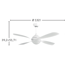 | |  | Ventilador de Techo Livorno Fabrilamp | | Ventilador DC de la serie LIVORNO realizado en metal, MDF y policarbonato, en color NEGRO con cuatro aspas. Tiene seis velocidades ajustables con motor DC. Tecnología LED incorporada con una potencia de 30W, con 3 TEMPERATURAS SELECCIONABLES DE LUZ( 3000-4500-6000K) y 3250 lúmenes. Su diseño moderno pero a la par que elegante, con aspas aerodinámicas de gran tamaño, lo hacen ideal para salones, comedores, espacios abiertos y zonas de trabajo. Tiene unas dimensiones de 39,2x51,7x132x132 centímetros, incluye dos medidas de TIJA (12,5 cm y 25 cm), lo que permite adaptarlo a distintas alturas. Control de aire verano o invierno. Mando a distancia INCLUIDO, MEMORIA DE COLOR incorporada y TEMPORIZADOR 1/2/4/8 H. Modelo disponible en color blanco, negro, blanco/haya y negro/roble. | Caracteristicas Ventilador Livorno Fabrilamp | Materiales | - Base Motor: Metal - Aspas: Madera MDF - Difusor de luz: Policarbonato | | Tonalidad de Metal | Negro | Accionado mediante | Mando a distancia. | Programador de apagado | Sí | Numero de Aspas | 4 | Tonalidad de Aspas | Negro | Motor Tipo | DC - Bajo Consumo | Velocidades | 6 | Consumo / Flujo aire Revoluciones / Sonoridad | - 1ª velocidad: 7w - 3500 m3/hora - 120 rpm - 35 dB - 2ª velocidad: 9w - 4500 m3/hora - 140 rpm - 36 dB - 3ª velocidad: 12w - 5000 m3/hora - 160 rpm - 37 dB - 4ª velocidad: 17w - 5500 m3/hora - 175 rpm - 39 dB - 5ª velocidad: 25w - 6900 m3/hora - 190 rpm - 42 dB - 6ª velocidad: 40w - 8100 m3/hora - 230 rpm - 45 dB | Función Invierno | Si. Activada en el mando. | Luz | Sí | | Tipo de Luz | Tecnología LED integrado | | Potencia de Luz | 30w | | Lúmenes | 3250 lúmenes | | Tonalidad de la luz | Seleccionable 3000-4500-6000 / Semicálida, Neutra o Fría | Posible montaje sin Barra | No | Posible montaje en techo inclinado | Si* | Grafico de medidas Ventilador Livorno Fabrilamp |