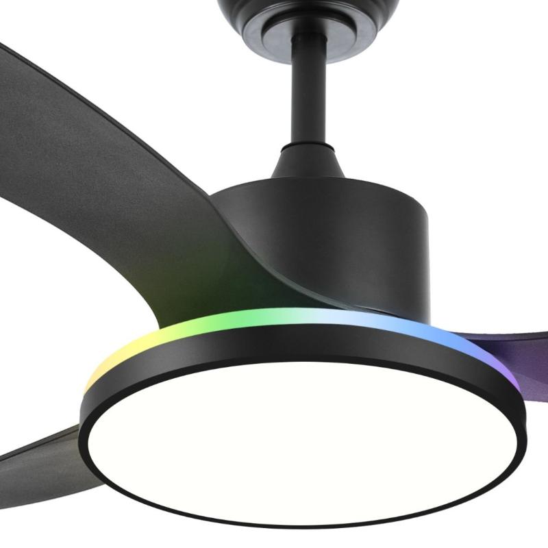 | Ventilador DC de la serie MANDALA realizado en metal, policarbonato y ABS, en color NEGRO con tres aspas. Diseño muy moderno y original, con bonito juego de luces, posee un aro en su estructura con luces de colores (RGB). Tiene seis velocidades ajustables. Tecnología LED integrada con una potencia de 48W, con 3 TEMPERATURAS SELECCIONABLES DE LUZ + RGB (3000-4500-6500K) y 4080 lúmenes. Control de aire verano o invierno. Su medida es de 31/46X120X120 centímetros, incluye dos tijas de 10 y 25 centímetros, para colocar a distintas alturas. Mando a distancia INCLUIDO, REGULABLE EN INTENSIDAD en su luz principal, con MEMORIA DE COLOR incorporada y TEMPORIZADOR 2 H. Puede utilizar el control VIA APP : FAN LAMP PRO, desde el que podrá manejar también su ventilador de manera fácil e intuitiva desde su móvil y elegir los colores de su aro exterior entre una amplia gama de tonalidades. Modelo disponible en color blanco y en negro. |