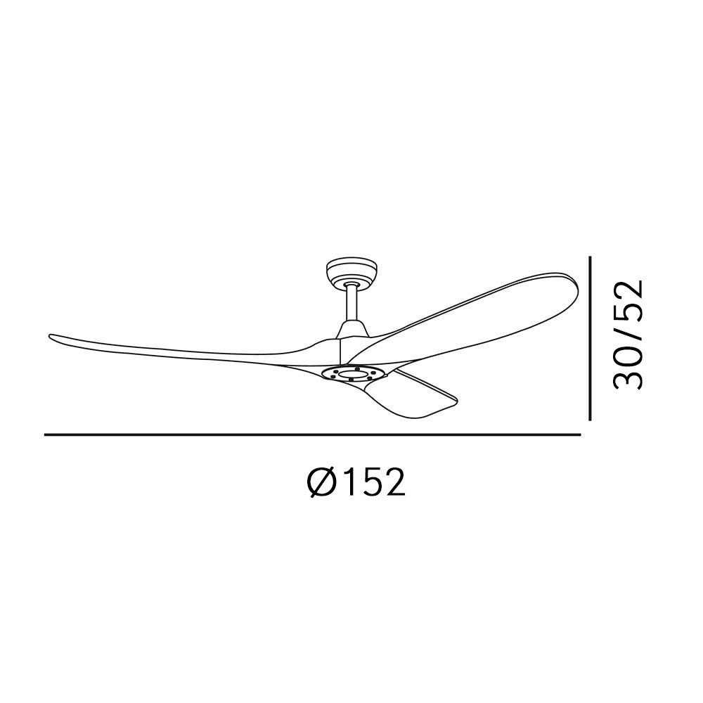 | Ventilador de Techo Marin Fabrilamp | Ventilador de techo de motor gama alta y bajo consumo con 5 velocidades y programador de apagado automático. Aspas de madera Natural. Se envia con 2 barras para adaptar a la altura mas idonea. | Caracteristicas Ventilador Marin Fabrilamp | Materiales | - Base Motor: Metal - Aspas: Madera Natural - Difusor inferior: Metal | | Tonalidad de Metal | Niquel Satinado | Accionado mediante | Mando a distancia. | Programador de apagado | Sí. 1, 4 y 8 horas. | Numero de Aspas | 3 | Tonalidad de Aspas | Haya | Motor Tipo | DC - Bajo Consumo | Velocidades | 5 | Consumo / Flujo aire Revoluciones / Sonoridad | - 1ª velocidad: 7w - 3000m3/hora - 78 rpm - 18 dB - 2ª velocidad: 11w - 4000m3/hora - 97 rpm - 23 dB - 3ª velocidad: 17w - 4500m3/hora - 114 rpm - 28 dB - 4ª velocidad: 25w - 5000m3/hora - 132 rpm - 33 dB - 5ª velocidad: 40w - 5500m3/hora - 153 rpm - 38 dB | Función Invierno | Si. Activada en el mando. | Luz | No | Posible montaje sin Barra | No | Posible montaje en techo inclinado | Sí* | Grafico de medidas Ventilador Marin Fabrilamp |