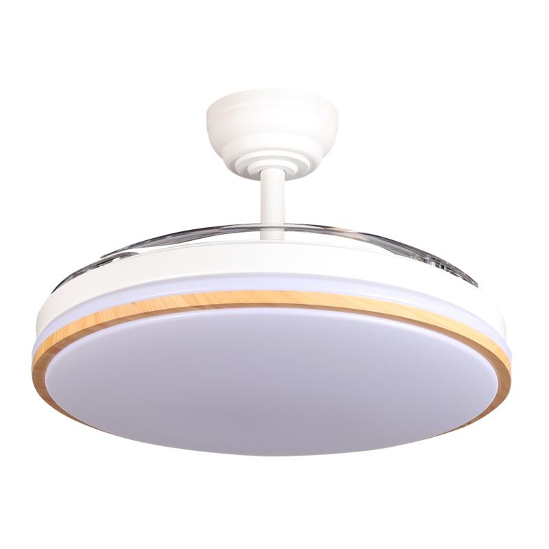 | Ventilador DC de la serie PARLATORE realizado en metal, policarbonato y ABS, en color BLANCO con tres aspas DESPLEGABLES de ABS transparente muy resistentes. De diseño moderno y original y tecnología inteligente e innovadora con CONTROL POR VOZ, pudiendo interactuar con su ventilador SIN CONEXION A INTERNET, simplemente con la palabra "ABRILA" delante de cada función que desee que realice: cambio de temperatura de luz, velocidad, bajar o subir la intensidad de la luz, etc. interviniendo en hacer nuestra vida diaria más cómoda y fácil. Tiene seis velocidades ajustables. Tecnología LED integrada con una potencia de 60W, con 3 TEMPERATURAS SELECCIONABLES DE LUZ (3000-4300-6500K) y 6980 lúmenes. Control de aire verano o invierno. Su medida es de 36X48X48 centímetros con las aspas plegadas y de 36X107X107 centímetros con las aspas desplegadas. Mando a distancia INCLUIDO, REGULABLE EN INTENSIDAD, con MEMORIA DE COLOR incorporada y TEMPORIZADOR 2H y 4H. Modelo disponible en color blanco y en color blanco/haya para elegir el que mejor le venga con su decoración. |