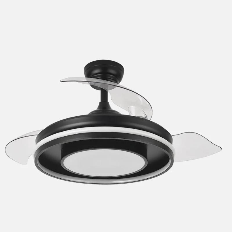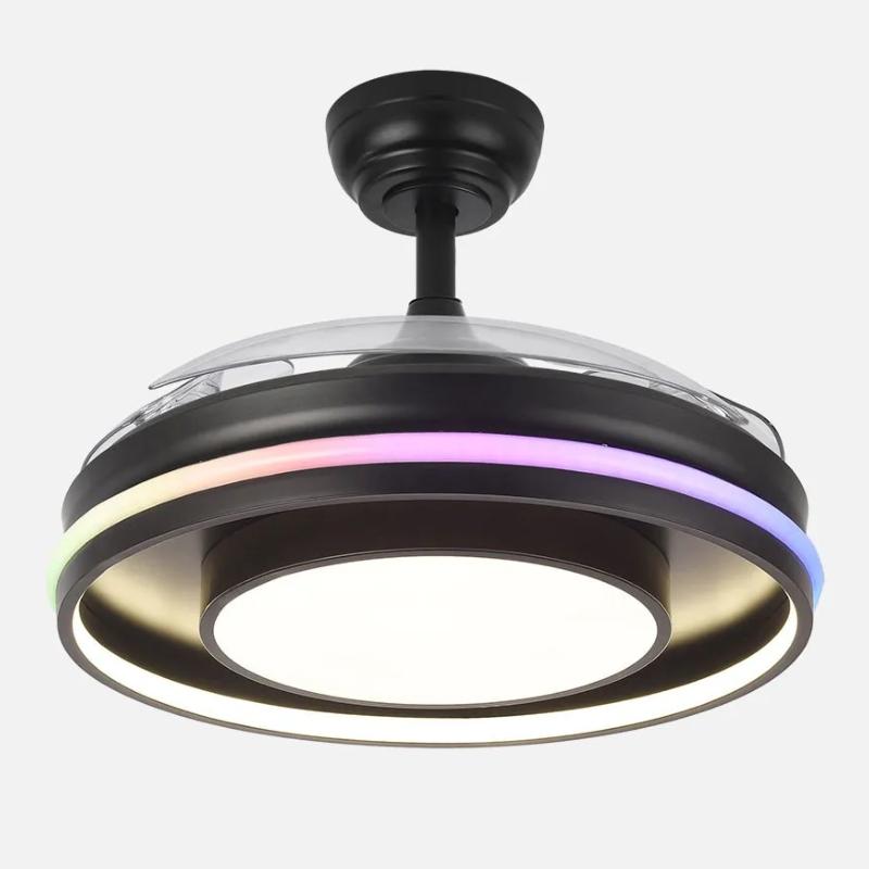 | Ventilador DC de la serie PITUFO realizado en metal, policarbonato y ABS, en color NEGRO con tres aspas DESPLEGABLES de ABS transparente muy resistentes. Diseño muy moderno y original, con bonito juego de luces, posee un aro en su estructura con luces de colores (RGB). Tiene seis velocidades ajustables. Tecnología LED integrada con una potencia de 57W, con 3 TEMPERATURAS SELECCIONABLES DE LUZ + RGB (3000-4500-6500K) y 3990 lúmenes. Control de aire verano o invierno. Su medida es de 32/47X50 centímetros con las aspas plegadas y de 32/47X107 centímetros con las aspas desplegadas. Incluye dos tijas de 10 y 25 centímetros, para colocar a distintas alturas. Mando a distancia INCLUIDO, REGULABLE EN INTENSIDAD, con MEMORIA DE COLOR incorporada y TEMPORIZADOR 2 H. Puede utilizar el control VIA APP : FAN LAMP PRO, desde el que podrá manejar también su ventilador de manera fácil e intuitiva desde su móvil y elegir los colores de su aro exterior entre una amplia gama de tonalidades. Modelo disponible en color blanco y negro. |
