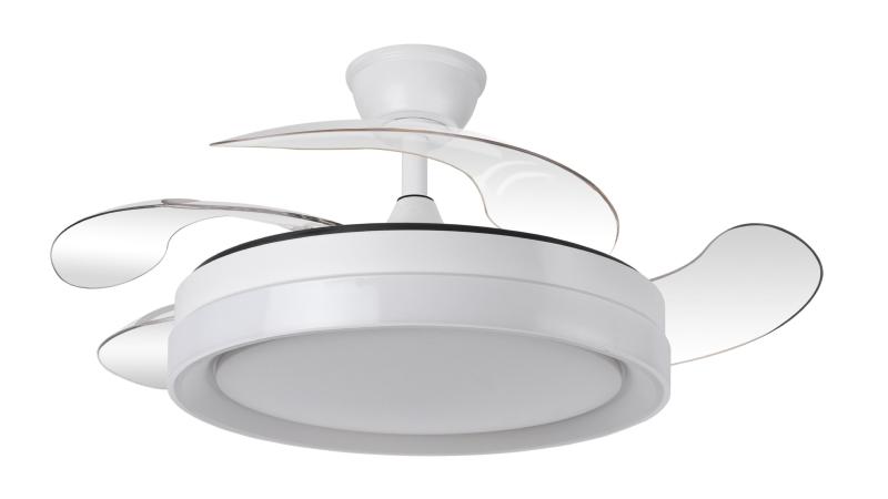 | Ventilador DC de la serie ZENIT en color BLANCO con cuatro aspas DESPLEGABLES muy resistentes. Realizado en metal, ABS y policarbonato, de diseño moderno, muy original y elegante. Tiene seis velocidades ajustables. Motor DC. Tecnología LED integrada con una potencia de 59W, 69800 lúmenes y 3 TEMPERATURAS SELECCIONABLES DE LUZ (3000-4000-6000K), luz cálida, luz natural y blanco frío. Control de aire verano o invierno. Su medida es de 34,5/42X50 centímetros con las aspas plegadas y de 34,5/42X107 centímetros con las aspas desplegadas, viene con DOS MEDIDAS DE TIJA para colocar a distintas alturas de techo. Mando a distancia INCLUIDO, REGULABLE EN INTENSIDAD, con MEMORIA DE COLOR y TEMPORIZADOR 2/4 H. Modelo disponible en color cuero, blanco y níquel. |