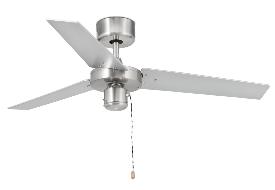 Descripción del ventilador Factory Faro - 106 cm Materiales | Base motor | Acero | Aspas | MDF | Accionamiento | Accionamiento mediante | Cadena | Mando a distancia | No | Programador de apagado | No. | | Aspas | Numero de aspas | 3 | Reversible | Sí | Tonalidad de las aspas | Gris / Negro. | | Motor | Velocidades | 3 | Revoluciones / Consumo | -1ª velocidad: 80 rpm / 20w. -2ª velocidad: 140 rpm / 29w. -3ª velocidad: 190 rpm / 42w. | Funcion Verano / Invierno | Sí | Flujo de aire | 109 m3 por minuto. | | Iluminación | Luz | No. | Montaje | Peso | 4 Kg | Posible montaje sin barra | No | Montaje en techo inclinado | Sí * | Tonalidad del metal | Niquel mate | Aspas reversibles | Sí. | Tonalidad de aspas | Gris / Negro | |
