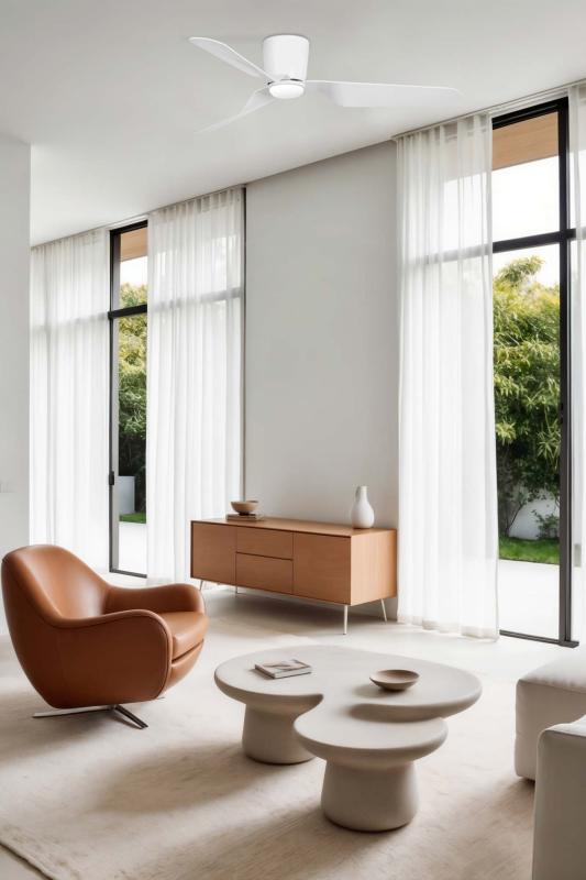 Materiales | - Base Motor: Acero - Aspas: ABS | | Tonalidad de Metal | Blanco | Accionado mediante | Mando a distancia. | Programador de apagado | Sí | Numero de Aspas | 3 | Tonalidad de Aspas | Blancas | Motor Tipo | DC - Bajo Consumo | Velocidades | 6 | Velocidades / Consumo | - 1ª velocidad: 50 rpm - 3w - 2ª velocidad: 76 rpm - 5w - 3ª velocidad: 102 rpm - 9w - 4ª velocidad: 127 rpm - 14w - 5ª velocidad: 157 rpm - 21w - 6ª velocidad: 180 rpm - 32w | | Flujo de Aire | 191 m3 | Función Invierno | Sí | Luz | Sí. Luz LED SMD - 15w | Datos de Luz | 800 lúmenes - 3000k - Luz Semicálida | Luminaria incluida | Si | Posible montaje sin Barra | No | Posible montaje en techo inclinado | No | Grafico de medidas Ventilador Pemba Faro | |
