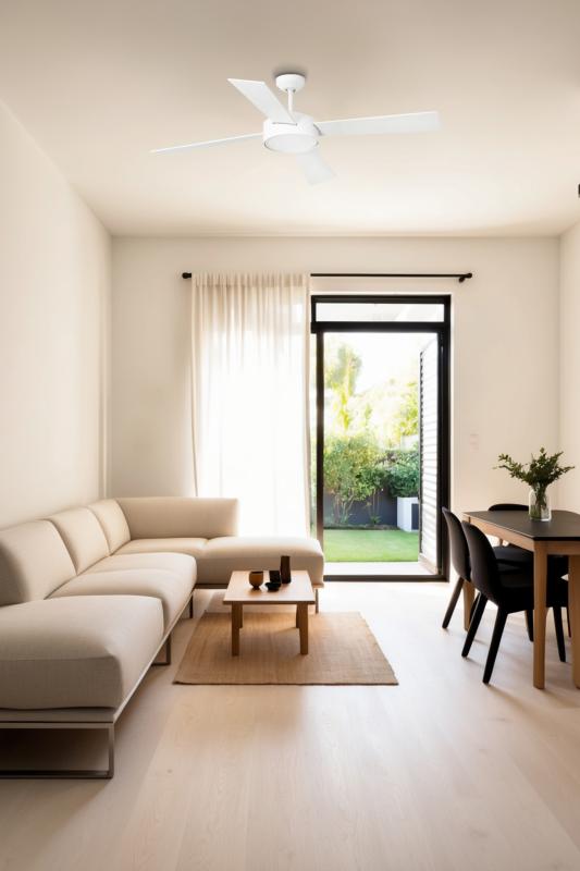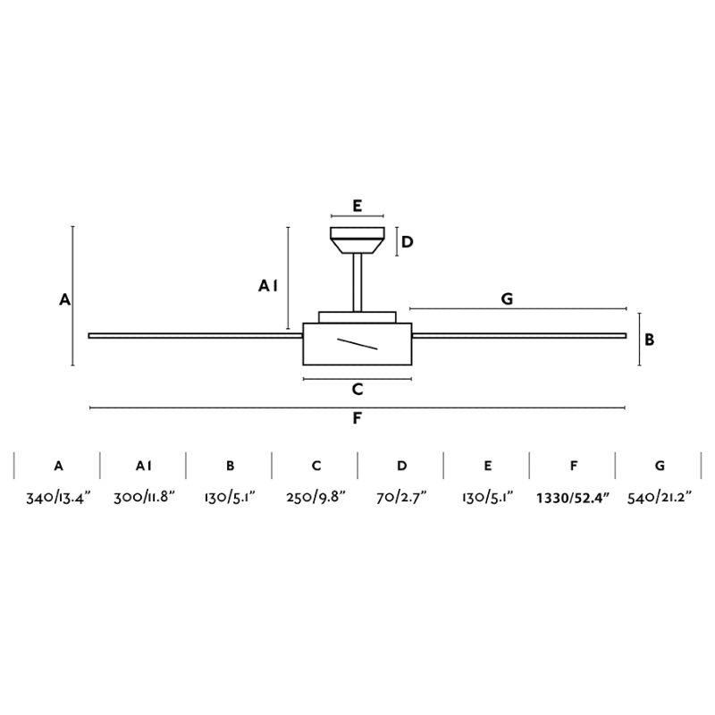 Materiales | - Base Motor: Acero - Aspas: Madera plywood - Difusor inferior: Policarbonato | | Tonalidad de Metal | Blanco | Accionado mediante | Mando a distancia. | Programador de apagado | Sí | Numero de Aspas | 4 | Tonalidad de Aspas | Blancas | Motor Tipo | DC - Bajo Consumo | Velocidades | 6 | Velocidades / Consumo | - 1ª velocidad: 99 rpm - 5w - 2ª velocidad: 116 rpm - 7w - 3ª velocidad: 134 rpm - 10w - 4ª velocidad: 154 rpm - 13w - 5ª velocidad: 172 rpm - 18w - 6ª velocidad: 193 rpm - 25w | | Flujo de Aire | 175 m3 | Función Invierno | Si. Activada en el mando. | Luz | Si - Luz LED SMD de 22w. | Datos de Luz | 1200 lúmenes - 3000k - Luz Semicálida | Luminaria incluida | Si | Posible montaje sin Barra | No | Posible montaje en techo inclinado | Sí* | Grafico de medidas Ventilador Hydra Faro | |
