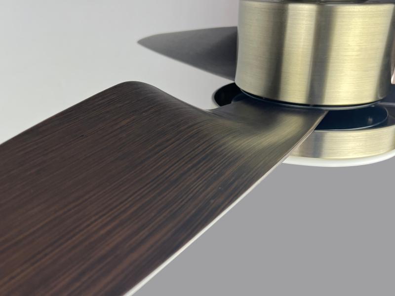 Materiales | - Base Motor: Metal - Aspas: ABS - Difusor inferior: Acrilico | | Tonalidad de Metal | Oro Envejecido | Accionado mediante | Mando a distancia. | Programador de apagado | Sí 1,2, 4 y 8 horas. | Numero de Aspas | 3 | Tonalidad de Aspas | Decoradas efecto madera nogal | Motor Tipo | DC - Bajo Consumo | Velocidades | 6 | Velocidades / Consumo | - 1ª velocidad: 96 rpm - 6w - 2ª velocidad: 104 rpm - 8w - 3ª velocidad: 127 rpm - 14w - 4ª velocidad: 154 rpm - 19w - 5ª velocidad: 176 rpm - 24w - 6ª velocidad: 205 rpm - 30w | Función Invierno | Si. Activada en el mando. | Luz | Si - Luz LED de 15w. | Lúmenes | 1500 lúmenes | | Tonalidad de la luz | Seleccionable: 3000-4000-5500k con memoria | Incluidas | Si | Posible montaje sin Barra | No | Posible montaje en techo inclinado | Sí* | Grafico de medidas Ventilador Nico Sunaca |