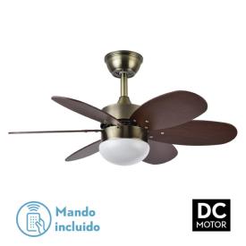 | Ventilador de Techo Alves Fabrilamp | | Ventilador DC serie ALVES con cinco aspas REVERSIBLES en color BLANCO/HAYA y seis velocidades. Sus dimensiones son 41x85x85 centímetros. Posee 2 portalámparas E27. Bombillas no incluidas. Tiene control remoto INCLUIDO con la opción verano/invierno y la opción de temporizador de 1 hasta 4 horas. El cuerpo del ventilador es de metal y policarbonato; y las aspas de MDF. Disponible en color Níquel-Plata/Haya, Blanco-Pastel/Intenso, Níquel-Wengué/Haya, Cuero-Cerezo/Nogal y Blanco/Haya | Caracteristicas Ventilador Alves Fabrilamp | Materiales | - Base Motor: Metal - Aspas: Madera MDF - Difusor inferior: Policarbonato | | Tonalidad de Metal | Cuero. | Accionado mediante | Mando a distancia. | Programador de apagado | Sí | Numero de Aspas | 6 | Tonalidad de Aspas | Reversibles: Cerezo/Nogal | Motor Tipo | DC -Bajo consumo | Velocidades | 6 | Velocidades / Consumo | - 1ª velocidad: 158 rpm / - - 2ª velocidad: 180 rpm / - - 3ª velocidad: 200 rpm / - - 4ª velocidad: 223 rpm / - - 5ª velocidad: 253 rpm / - - 6ª velocidad: 270 rpm / - | Función Invierno | Si | Luz | Si | Fuente de Luz | 2 Bombillas E27 | Bombillas incluidas | No | Posible montaje sin Barra | No | Posible montaje en techo inclinado | Si* | Grafico de medidas Ventilador Alves Fabrilamp | |