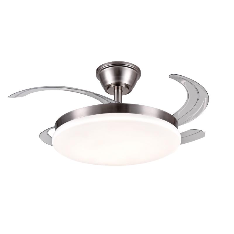 | - Base Motor: Policarbonato - Aspas: ABS - Difusor inferior: Acrílico | | Tonalidad de Metal | Níquel satinado | Accionado mediante