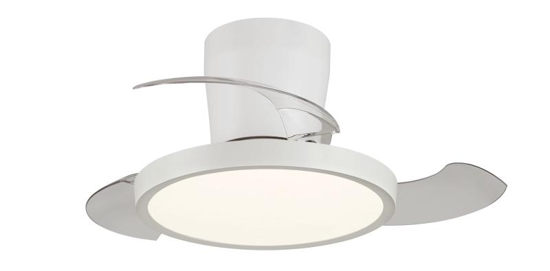 Ventilador de techo Melody, es ideal para estancias de tamaño pequeño. Su motor DC de 30w de ultima tecnología, super silencioso y de bajísimo consumo. Sus 4 aspas acrílicas de formato retorcido, quedan ocultas con el ventilador apagado, dejando solo ver una lámpara de techo.