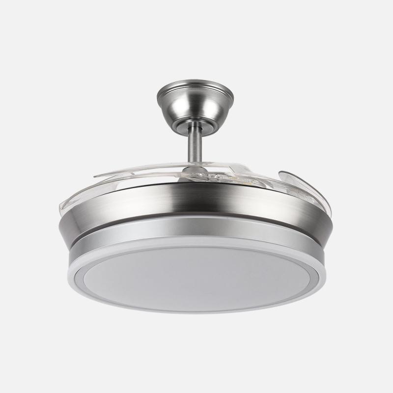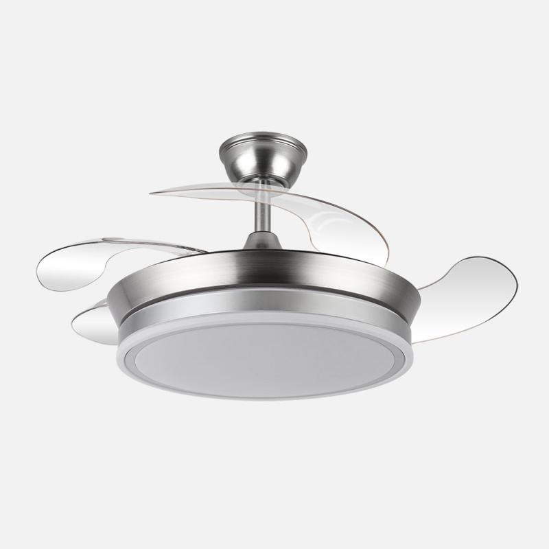 | | | Ventilador de Techo Bayomo Mini Fabrilamp | | Ventilador DC de la serie BAYOMO realizado en metal, policarbonato y ABS, en color NÍQUEL con tres aspas DESPLEGABLES de ABS transparente muy resistentes. Tiene seis velocidades ajustables. Tecnología LED integrada con una potencia de 72W, con 3 TEMPERATURAS SELECCIONABLES DE LUZ (3000-4000-6000K) y 7200 lúmenes. Control de aire verano o invierno. Su medida es de 32/47X40 centímetros con las aspas plegadas y de 32/47X91 centímetros con las aspas desplegadas. Incluye dos tijas de 10 y 25 centímetros, para colocar a distintas alturas. Mando a distancia INCLUIDO con MEMORIA DE COLOR incorporada y TEMPORIZADOR 1/2/4 H. Modelo también disponible con un diámetro de 108 centímetros. | Caracteristicas Ventilador Bayomo mini Fabrilamp | Materiales | - Base Motor: Metal - Aspas: ABS - Difusor inferior: Policarbonato | | Tonalidad de Metal | Níquel | Accionado mediante | Mando a distancia. | Programador de apagado | Sí. 1, 2, y 4 horas. | Numero de Aspas | 3 | Tonalidad de Aspas | Transparentes | Motor Tipo | DC - Bajo Consumo | Velocidades | 6 | Consumo / Flujo aire Revoluciones / Sonoridad | - 1ª velocidad: 5.2w - 1200m3/hora - 170 rpm - 34.3 dB - 2ª velocidad: 6.5w - 1500m3/hora - 190 rpm - 35.1 dB - 3ª velocidad: 8.6w - 2100m3/hora - 210 rpm - 35.9 dB - 4ª velocidad: 11.2w - 2600m3/hora - 230 rpm - 37.2 dB - 5ª velocidad: 14.5w - 3100m3/hora - 250 rpm - 38.3 dB - 6ª velocidad: 17.7w - 4500m3/hora - 270 rpm - 40 dB | Función Invierno | Sí | Luz | Si - Luz LED de 72w. | Datos de Luz | 7200 lúmenes | | Tonalidad de la Luz | Seleccionable (3000-4000-6000k) Con Memoria | Posible montaje sin Barra | No | Posible montaje en techo inclinado | No | Grafico de medidas Ventilador Bayomo mini Fabrilamp |  |