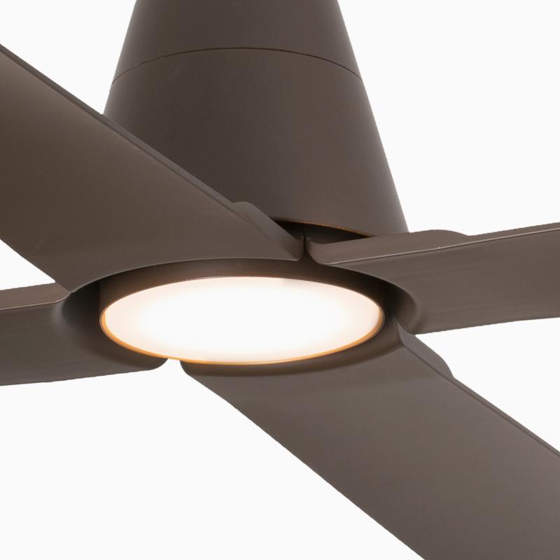 Materiales | - Base Motor: Acero - Aspas: ABS - Difusor: Policarbonato | | Tonalidad de Metal | Marron | Accionado mediante | Mando a distancia. | Programador de apagado | No | Numero de Aspas | 4 | Tonalidad de Aspas | Marron | Motor Tipo | DC - Bajo Consumo | Velocidades | 6 | Velocidades / Consumo | - 1ª velocidad: 50 rpm - 3w - 2ª velocidad: 71 rpm - 5w - 3ª velocidad: 93 rpm - 8w - 4ª velocidad: 115 rpm - 12w - 5ª velocidad: 138 rpm - 21w - 6ª velocidad: 162 rpm - 31w | | Flujo de Aire | 183m3 | Función Invierno | Si. Activada en el mando. | Luz | Sí - Luz LED 19w | | Lúmenes | 900 Lúmenes | | Tonalidad de la luz | 3000k - Semicálida | | Luminaria Incluida | Sí | Posible montaje sin barra | No | Posible montaje en techo inclinado | Si* | Grafico de medidas Ventilador Typhoon M Faro | |