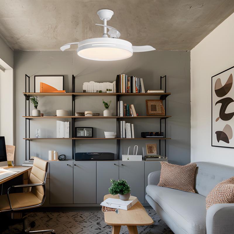VENTILADOR MINI TOGO BLANCO 40CMS 3 PALAS es un ventilador de techo de diseño actual perteneciente a la colección MINI TOGO. Incorpora motor DC de bajo consumo, que garantiza un funcionamiento silencioso y eficiente. Dispone de varias velocidades regulables y función inversa verano/invierno para un uso durante todo el año. Incluye sistema de iluminación led. Ideal para aportar confort, eficiencia energética y estilo a cualquier estancia.