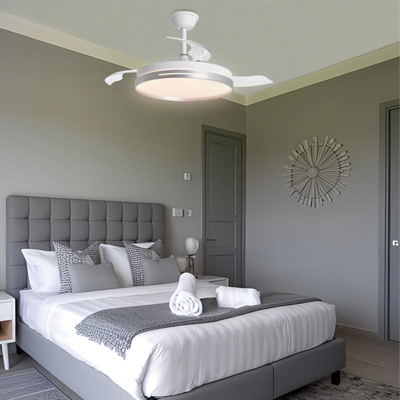 VENTILADOR MINI TOGO PLATA 40CMS 3 PALAS es un ventilador de techo de diseño actual perteneciente a la colección MINI TOGO. Incorpora motor DC de bajo consumo, que garantiza un funcionamiento silencioso y eficiente. Dispone de varias velocidades regulables y función inversa verano/invierno para un uso durante todo el año. Incluye sistema de iluminación led. Ideal para aportar confort, eficiencia energética y estilo a cualquier estancia.