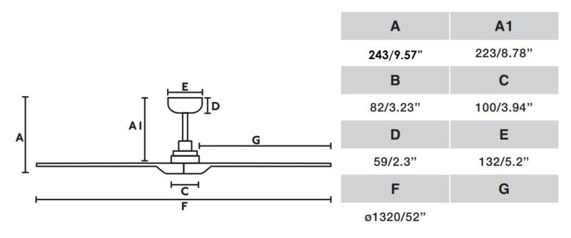 Grafico de medidas Ventilador Heywood M Faro