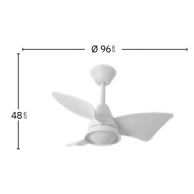 Ventilador DC de la serie JAGUAR realizado en metal, ABS y policarbonato, en color BLANCO con tres aspas. Tiene seis velocidades ajustables. Motor DC. Tecnología LED incorporada con una potencia de 30 vatios, con 3 TEMPERATURAS DE LUZ( 3000-4500-6500K) y 3000 lúmenes. De diseño moderno y original. Su medida es de 48X96X96 centímetros. Control de aire verano e invierno. REGULABLE EN INTENSIDAD, con mando a distancia INCLUIDO, MEMORIA DE COLOR incorporada y TEMPORIZADOR 1/4/8 H. Su voltaje va de 186 a 265 vatios, lo que resiste en un campo muy amplio a subidas y bajadas de tensión sin sufrir daño alguno. Modelo disponible en negro, blanco, blanco/haya y en negro/roble.