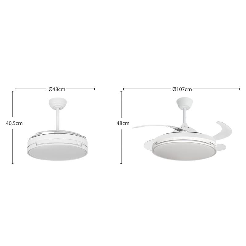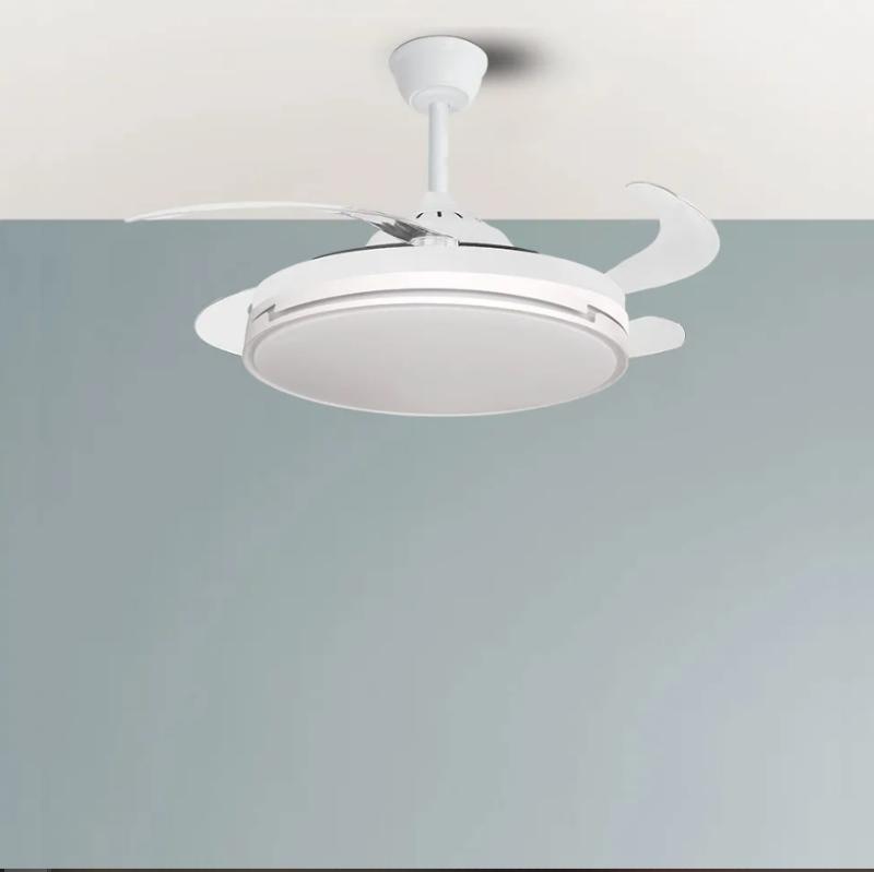 | | | Ventilador de Techo Papiro Fabrilamp | | Ventilador DC serie PAPIRO en color BLANCO con tres aspas DESPLEGABLES muy resistentes. Realizado en metal, ABS y policarbonato, con un diseño original y elegante. Motor DC con seis velocidades ajustables. Tecnología LED integrada con una potencia de 72W, 6120 lúmenes y 3 TEMPERATURAS SELECCIONABLES DE LUZ (3000-4000-6500K), luz cálida, natural y blanco frío. Control de aire verano o invierno. Tiene unas dimensiones de 34,5/47x48x48 centímetros con las aspas plegadas y de 34,5/47x107x107 centímetros con las aspas desplegadas, con DOS MEDIDAS DE TIJA incluidas para colocar a distintas alturas. Mando a distancia INCLUIDO con MEMORIA DE COLOR incorporada y TEMPORIZADOR 2/4 H. Modelo disponible en dos tamaños. | Caracteristicas Ventilador Papiro Fabrilamp | Materiales | - Base Motor: Metal - Aspas: ABS - Difusor inferior: Policarbonato | | Tonalidad de Metal | Blanco | Accionado mediante | Mando a distancia. | Programador de apagado | Sí. 2, y 4 horas. | Numero de Aspas | 3 | Tonalidad de Aspas | Transparentes | Motor Tipo | DC - Bajo Consumo | Velocidades | 6 | Consumo / Flujo aire Revoluciones / Sonoridad | - 1ª velocidad: 7w - 2650m3/hora - 180 rpm - 25 dB - 2ª velocidad: 12w - 3744m3/hora - 195 rpm - 28 dB - 3ª velocidad: 14w - 4600m3/hora - 210 rpm - 31 dB - 4ª velocidad: 18w - 5990m3/hora - 220 rpm - 34 dB - 5ª velocidad: 23w - 7180m3/hora - 235 rpm - 37 dB - 6ª velocidad: 28w - 8953m3/hora - 250 rpm - 40 dB | Función Invierno | Sí | Luz | Si - Luz LED de 72w. | Datos de Luz | 6120 lúmenes | | Tonalidad de la Luz | Seleccionable (3000-4000-6500k) Con Memoria | Posible montaje sin Barra | No | Posible montaje en techo inclinado | Sí* | Grafico de medidas Ventilador Papiro Fabrilamp |