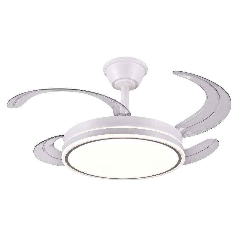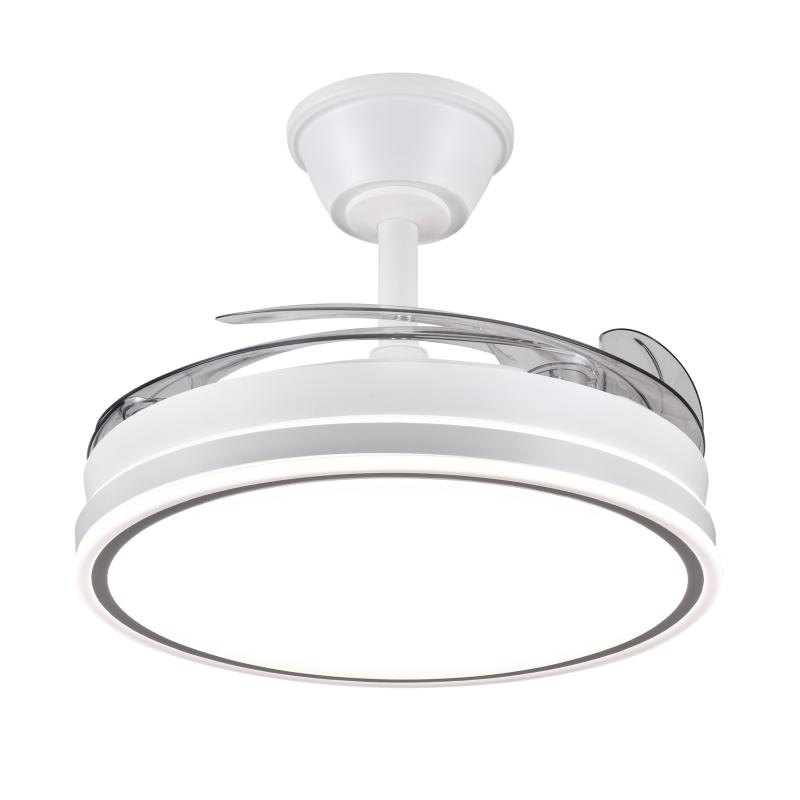 | Ventilador de techo Stella S, es ideal para estancias de tamaño pequeño. Su motor DC es de ultima tecnología (30w muy por encima de sus competidores en el mercado), super silencioso y de bajísimo consumo. Sus 4 aspas acrílicas de formato retorcido, quedan ocultas con el ventilador apagado, dejando solo ver una lámpara de techo. Dispone de mando a distancia de 6 velocidades, más programador de apagado automático. Monta iluminación mediante placa LED 48w sustituible, pudiendo seleccionar la tonalidad de la luz entre Fria, Neutra o Calida. Se envía con 2 barras de distinto tamaño, para adaptarlo a la altura ideal. Este ventilador de aspas retráctiles puede controlarse desde mando a distancia con función display, como por app móvil, gracias a la conectividad de APP que incorpora.